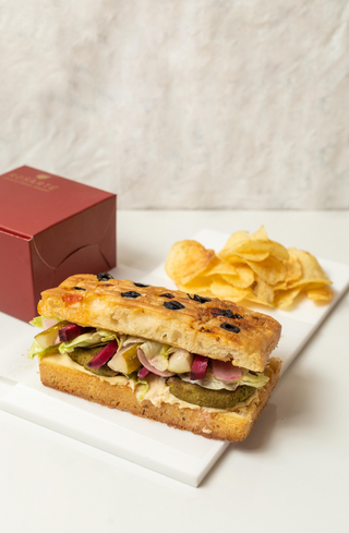 Mediterranean Falafel, Hummus & Pickled Vegetable Focaccia Sandwich
